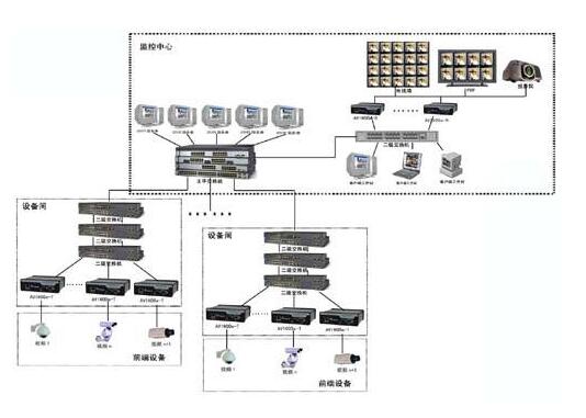 系統(tǒng)采用三級(jí)架構(gòu)體系。各監(jiān)控現(xiàn)場(chǎng)為第一級(jí),此級(jí)主要是視頻源的采集,主要是攝像機(jī)、球機(jī)防護(hù)罩和支架等的安裝;網(wǎng)線和光纜及聲音、報(bào)警、控制等信號(hào)的架設(shè)為二級(jí);主控室設(shè)在信息樓網(wǎng)絡(luò)中心,用于監(jiān)看和圖像轉(zhuǎn)發(fā),并具有電視墻和分配控制等功能為第三級(jí)(提供預(yù)留功能,此系統(tǒng)已具備此功能),此級(jí)建有總控中心,可以看各監(jiān)控現(xiàn)場(chǎng)任意一路視頻圖像,具有身份認(rèn)證,權(quán)限管理,控制及圖像轉(zhuǎn)發(fā)等功能,具有電子地圖管理和中心大屏幕監(jiān)看功能。